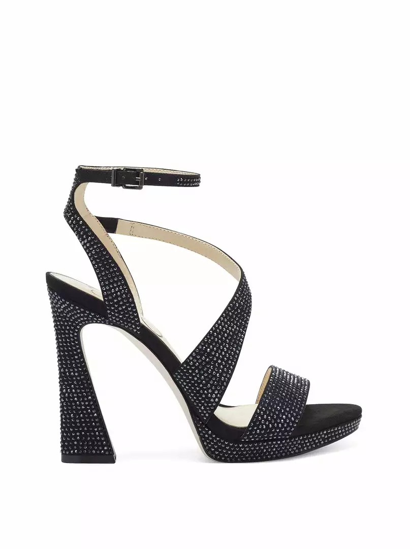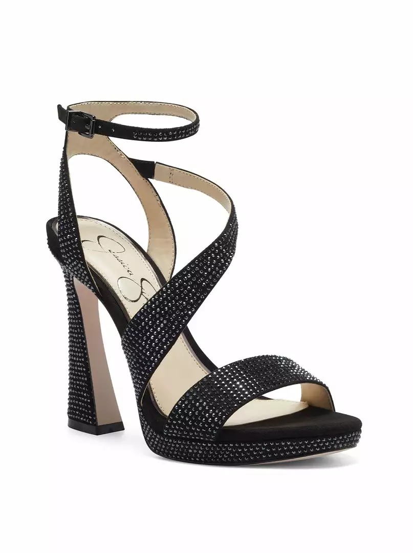 Strappy platform sandal with ankle strap.