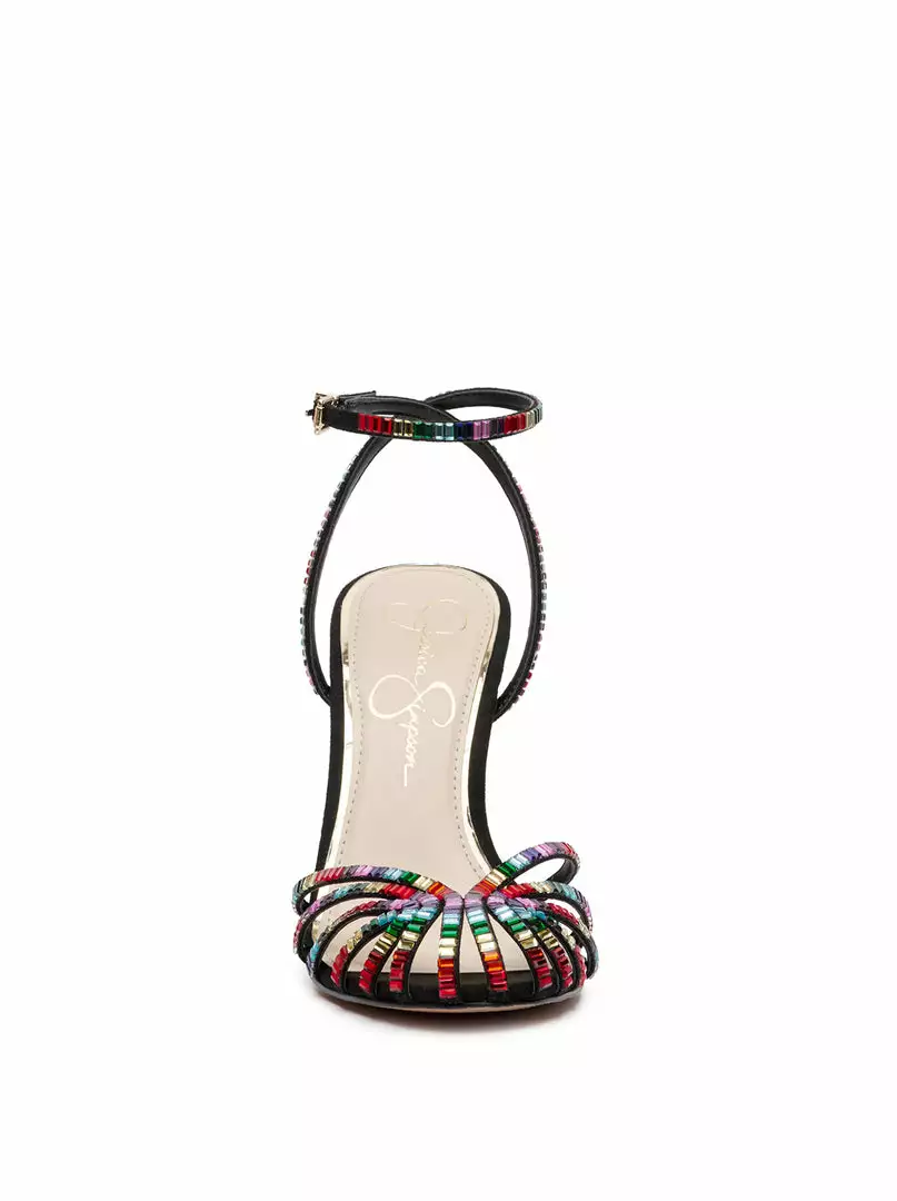 Caged Toe Embellished High Heel with Ankle Strap