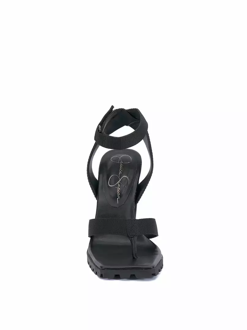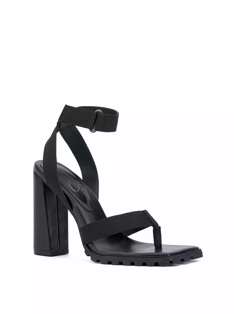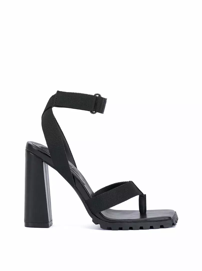 Lug Sole High Heel with Velcro Ankle Strap.