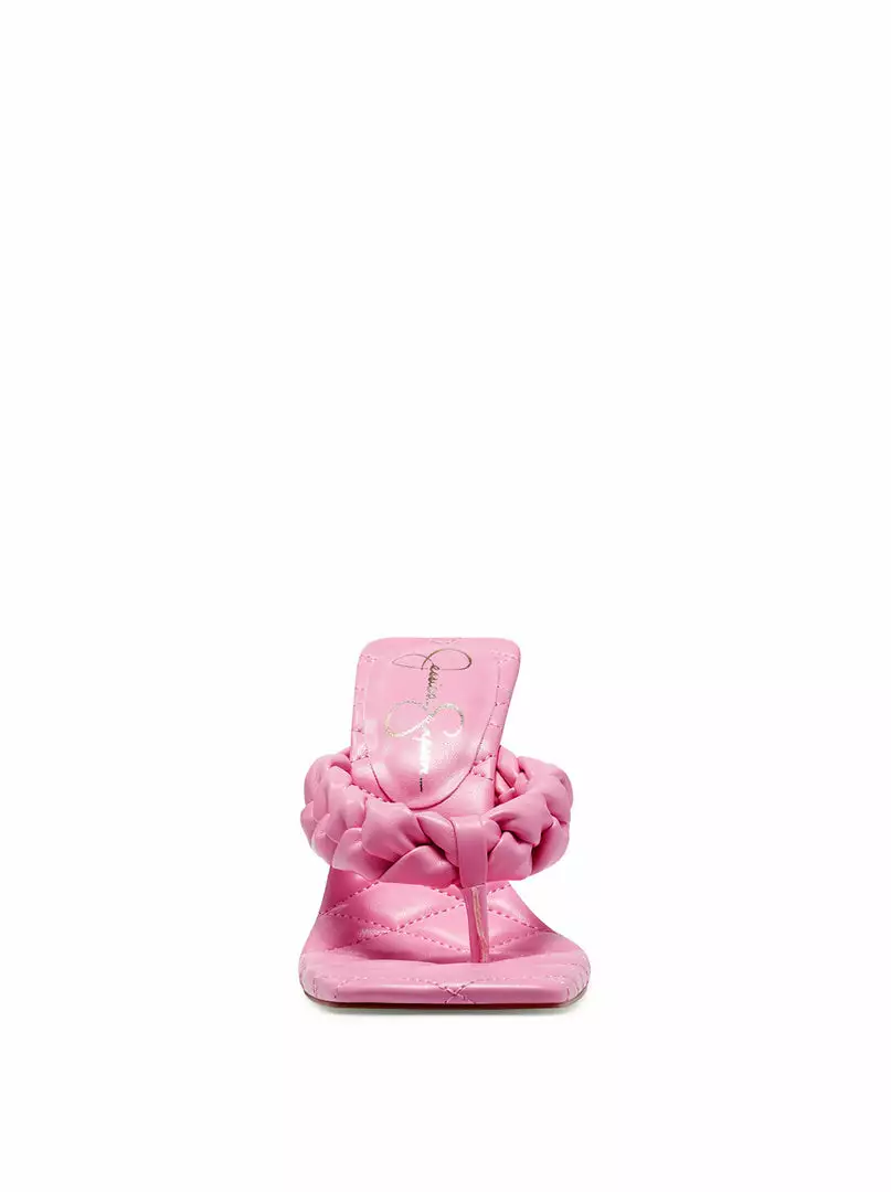 Block Heel Thong Sandal with Braided Detail.