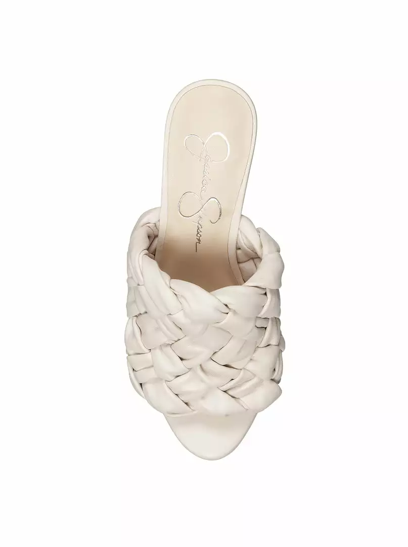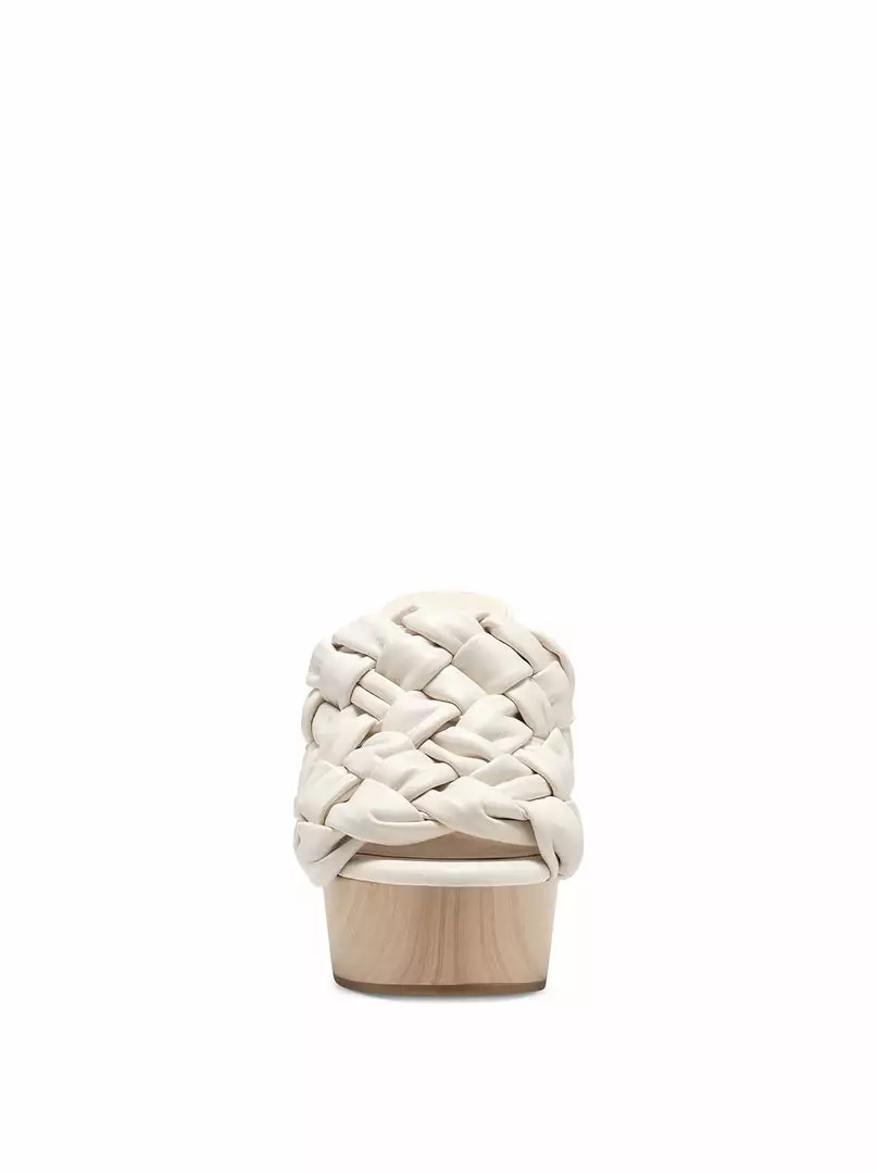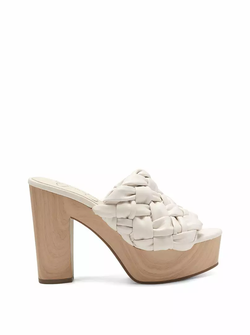 70’s style platform slide with woven detail.