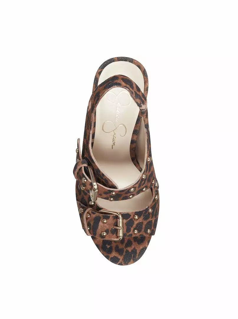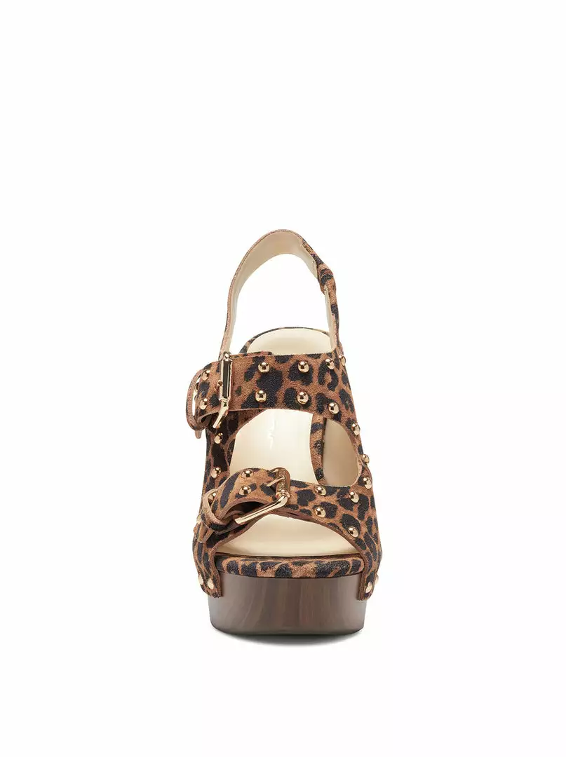 Platform Wedge Sandal with Ankle Strap, Stud and Buckle Detailing.
