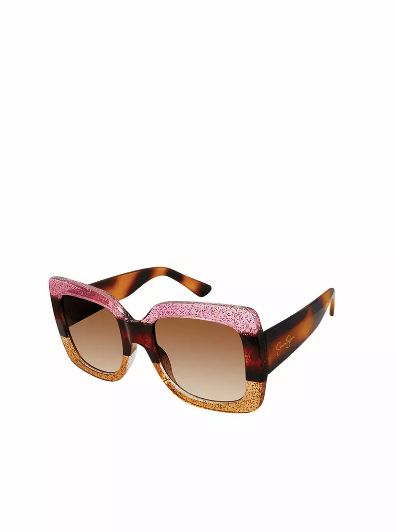 Find your inner Elton John in these oversized playful sunglasses with ombre sparkle frames.