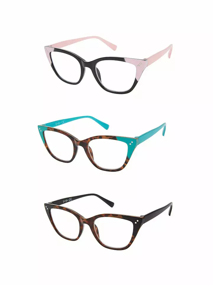 STYLISH SET of 3 JESSICA SIMPSON READING GLASSES FOR WOMEN: Assorted colors to match any outfit or ocassion & convenient to leave a pair of readers in your car, office & at home so you’re never without a pair of readers. Great Gifts for Women!